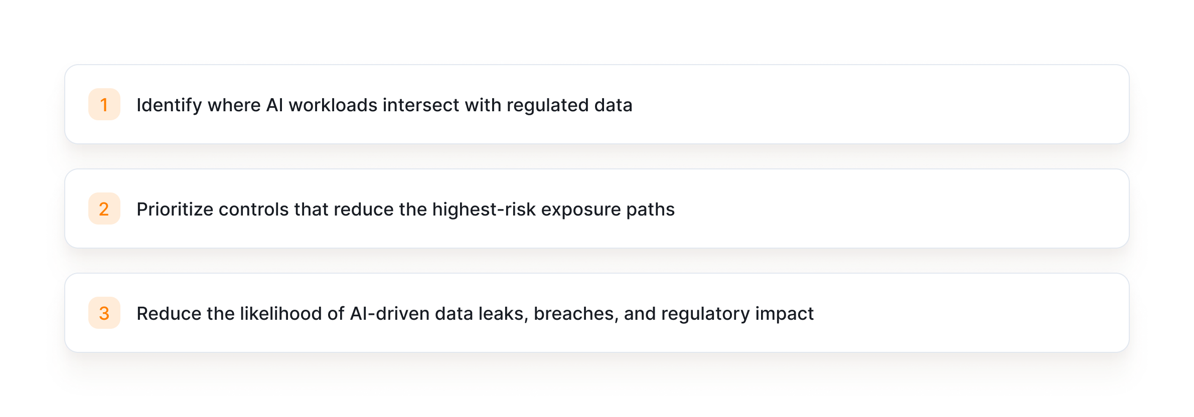 Security teams assess model behavior and AI governance posture, while data protection teams track sensitive datasets and regulatory exposure. Without a unified view, organizations lack clear visibility into where AI workloads intersect with their most sensitive information.