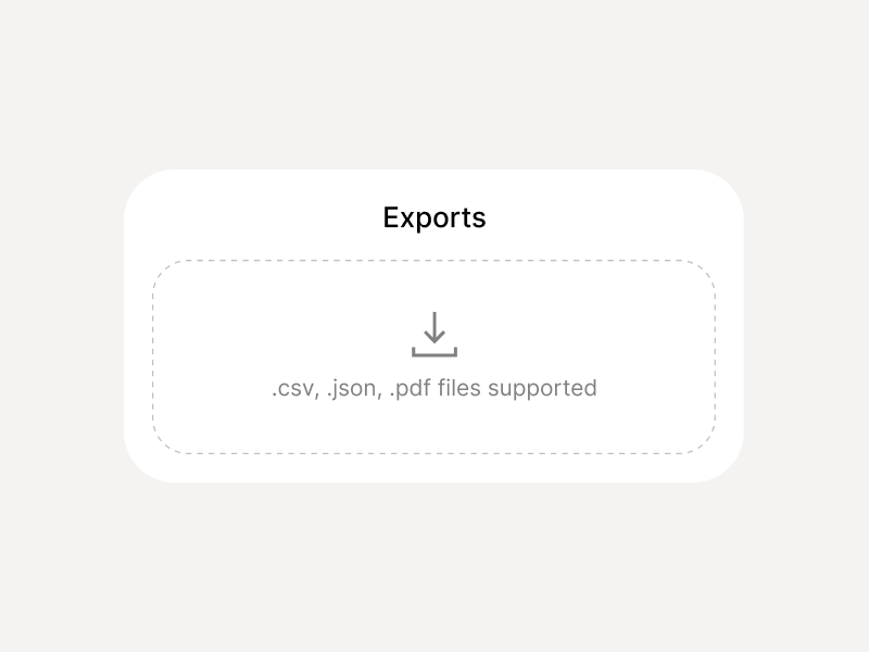 PDF, CSV, and JSON exports for compliance reviews, incident investigations, and retention requirements.