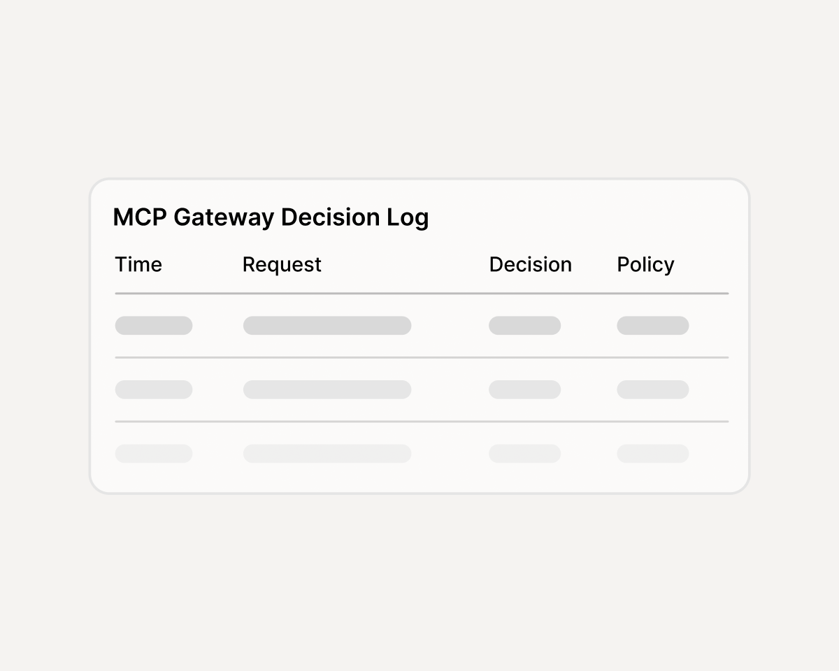 Tool calls happen at runtime with no policy layer. If an MCP server is misused, exploited, or leaks data, there's no log of what was allowed or why.